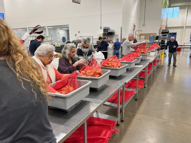 At our event on March 25, we sorted potatoes from 2000 lb containers into 40 lb bags that food shelves use to distribute potatoes to their clients. We also packed apples and oats. There were other groups, as well as our Rotary Club. Although, not glamorous work, participants get the feeling that they are doing important work in the fight against hunger. After two hours, we had packed over 17,000 lbs of food and, in Second Harvest’s calculations, that equates to 16,203 meals! Definitely something to be proud of. Take a look at the pictures below to see some of the happy members and other helpers.